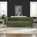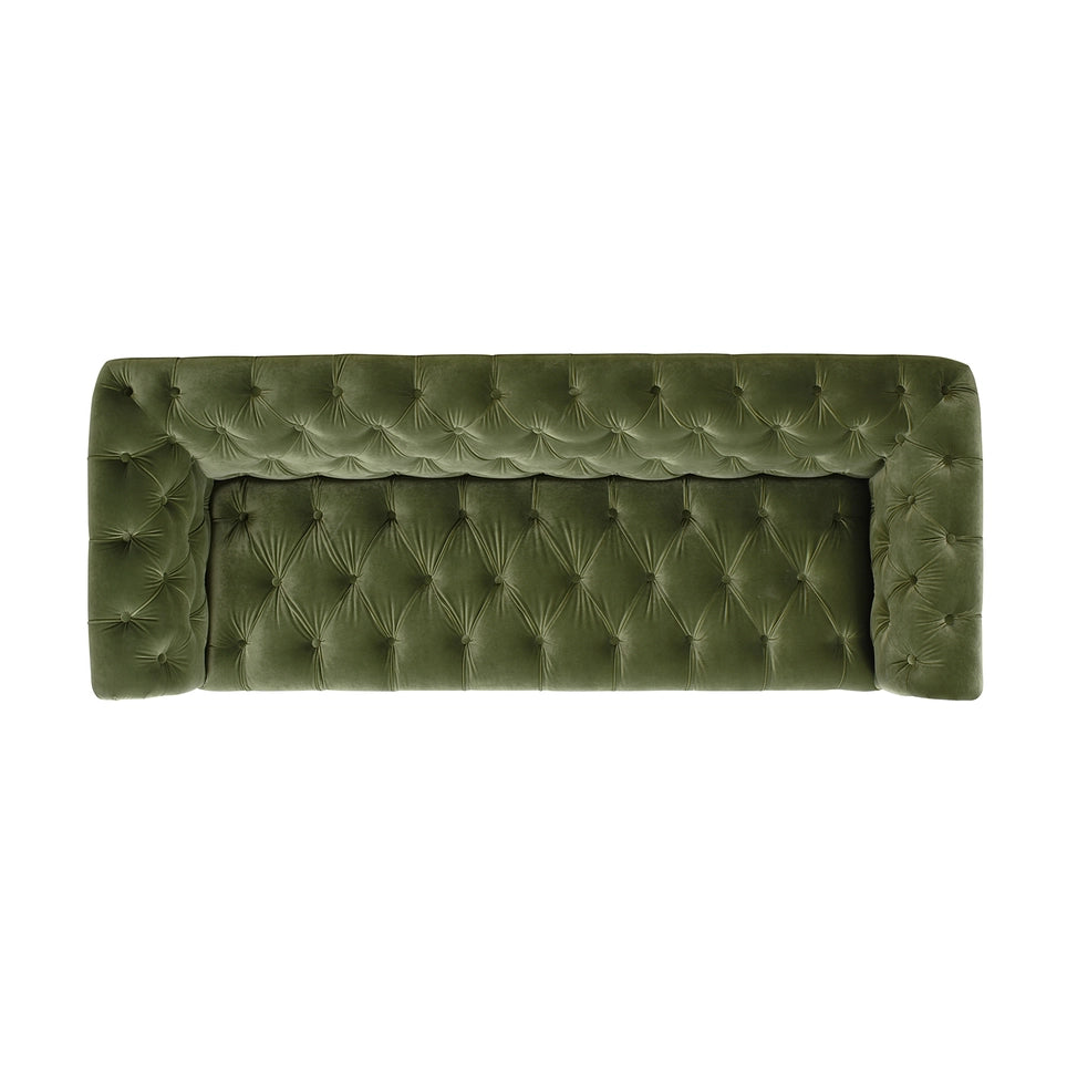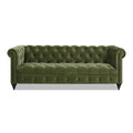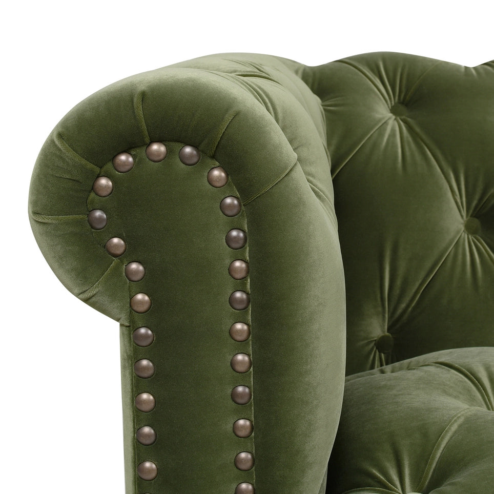 Look no further than the classically bold style of the Alto Chesterfield Sofa by Jennifer Taylor Home for your seating needs. The all-over button tufting is created with hand-covered buttons in matching upholstery and pulled deep for a truly heirloom look. The bronzed nailhead accents are individually set by master craftsmen and lend a subtly glamorous accent to the stately silhouette. This 3-seater couch is perfectly sized for entertaining and lounging, with generous rolled shelter arms and medium-deep tufted seats that make comfort second nature. Its timeless look can anchor any look in your home from transitional to modern glam.