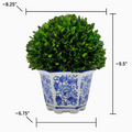 Boxwood Ball Topiary in Hexagon Blue & White Ceramic Pot