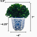 Imagine the perfect centerpiece: a perfectly manicured sphere of preserved boxwood foliage, boasting a lush, emerald hue that never fades. Nestled within a hand-painted ceramic pot adorned with intricate blue and white designs, this topiary brings a symphony of color and texture to your space. The hand-crafted ceramic pot elevates the entire piece. Each pot is uniquely adorned with delicate floral patterns, adding a touch of artisanal charm. More than just a centerpiece, this preserved boxwood topiary makes a thoughtful gift.