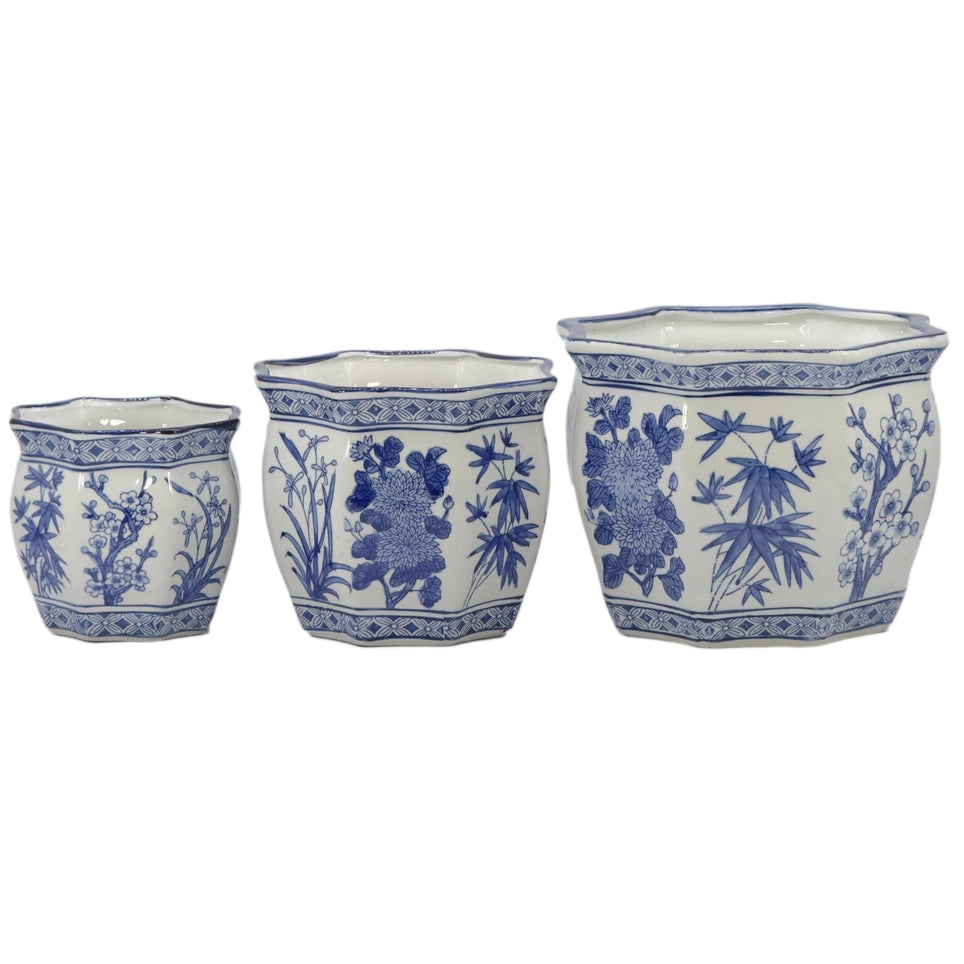 Set of 3 - 7.5"/10"/13" Ceramic Chinoiserie Planter Pot Set